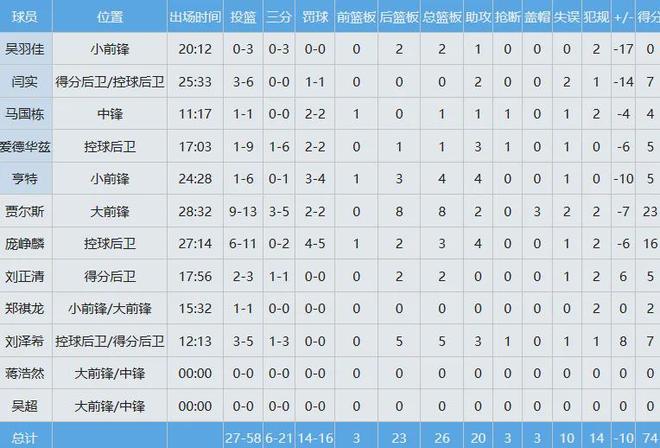 本土三巨头周琦+赵睿+陈盈骏合计40分14板11助,北京队数据如下: